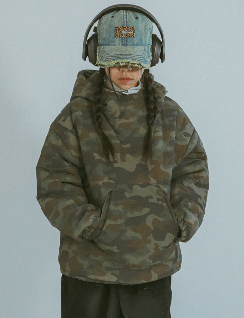카모플라쥬 패딩 후디