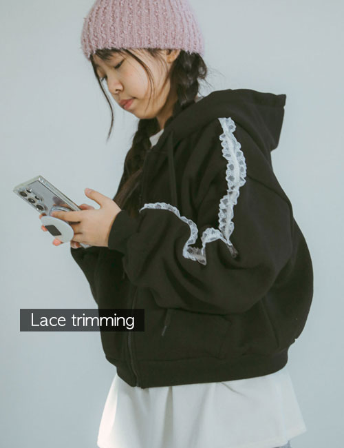레이스 트리밍 후드집업 (기모)