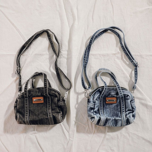 포인트로 활용하기 좋은 워싱 데님 소재의 미니 크로스백