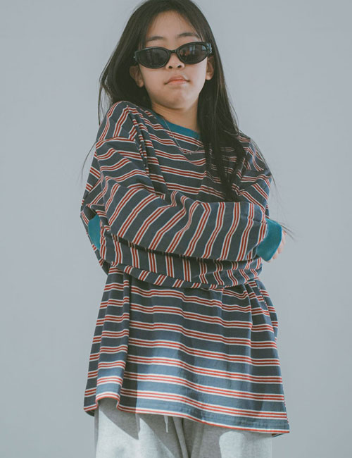 스트라이프 패턴이 돋보이는 루즈핏 롱슬리브 티셔츠.