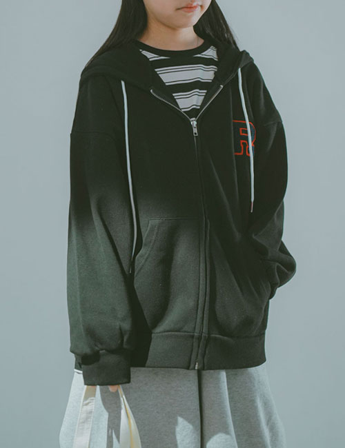여유 있는 실루엣의 집업 후드 아이템.
