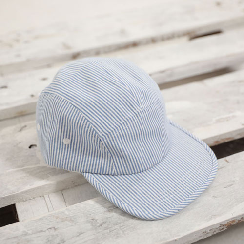 청량한 배색이 매력인 미니스트라이프 패턴의 캠프캡입니다.