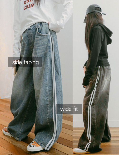 테이핑 벌룬 와이드 데님팬츠