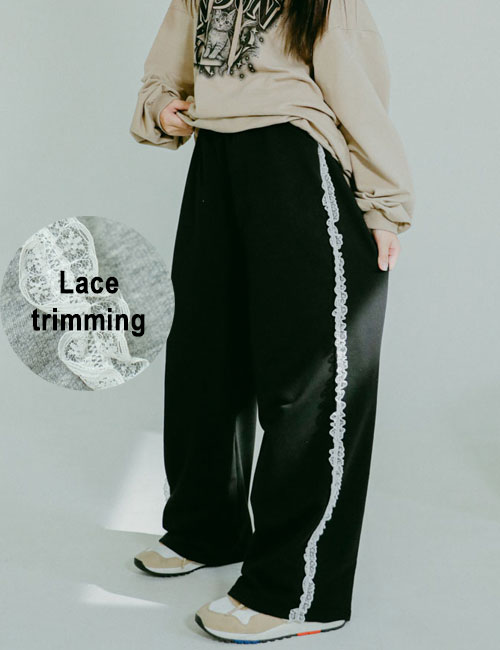 레이스 트리밍 와이드 스웨트팬츠