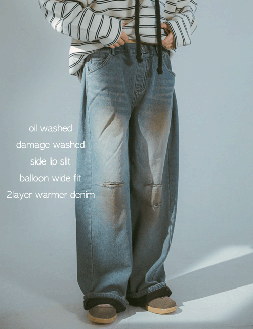 빈티지워싱 벌룬 와이드 데님팬츠 (기모)( 리뷰 : 35 )