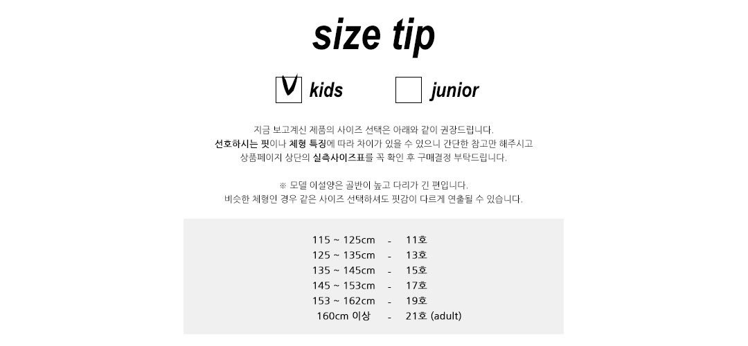 실측(단위:cm) | 11호 | 13호 | 15호 | 17호 | 19호 |