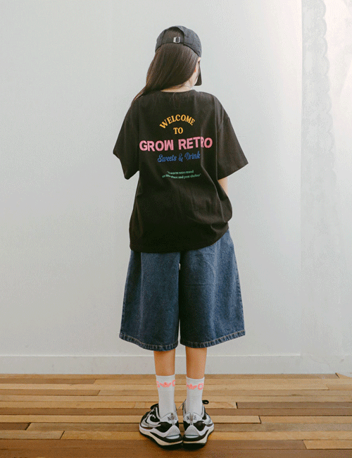 * 컬러풀한 텍스트 레이아웃과 자유로운 핏의 코튼 티셔츠